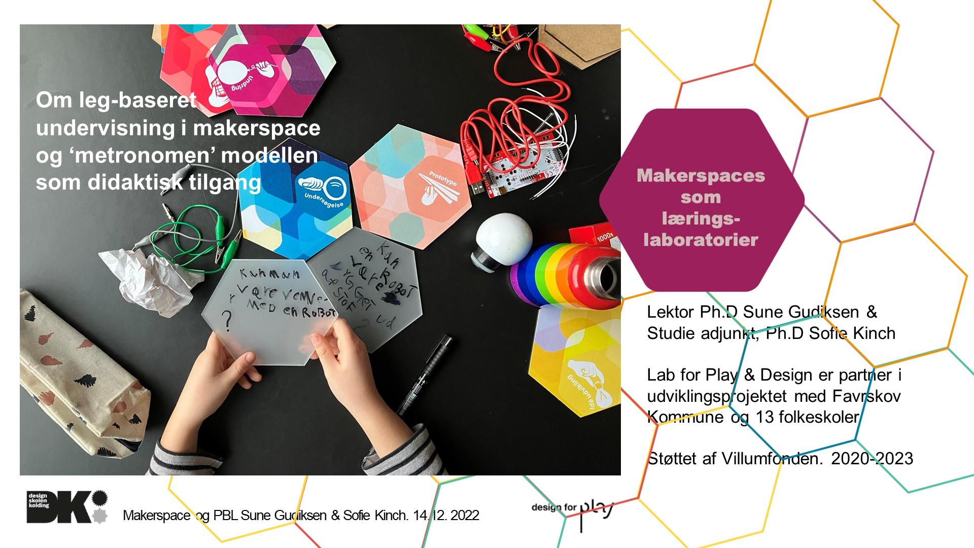 DESIGN OG LEG: Hør forskerne Sune Klok Gudiksen og Sofie Kinch fra Kolding Designskole præsentere det pædagogiske værktøj ”Metronomen model” for legebaseret undervisning, som ti skoler har brugt i etablering af Maker Spaces.