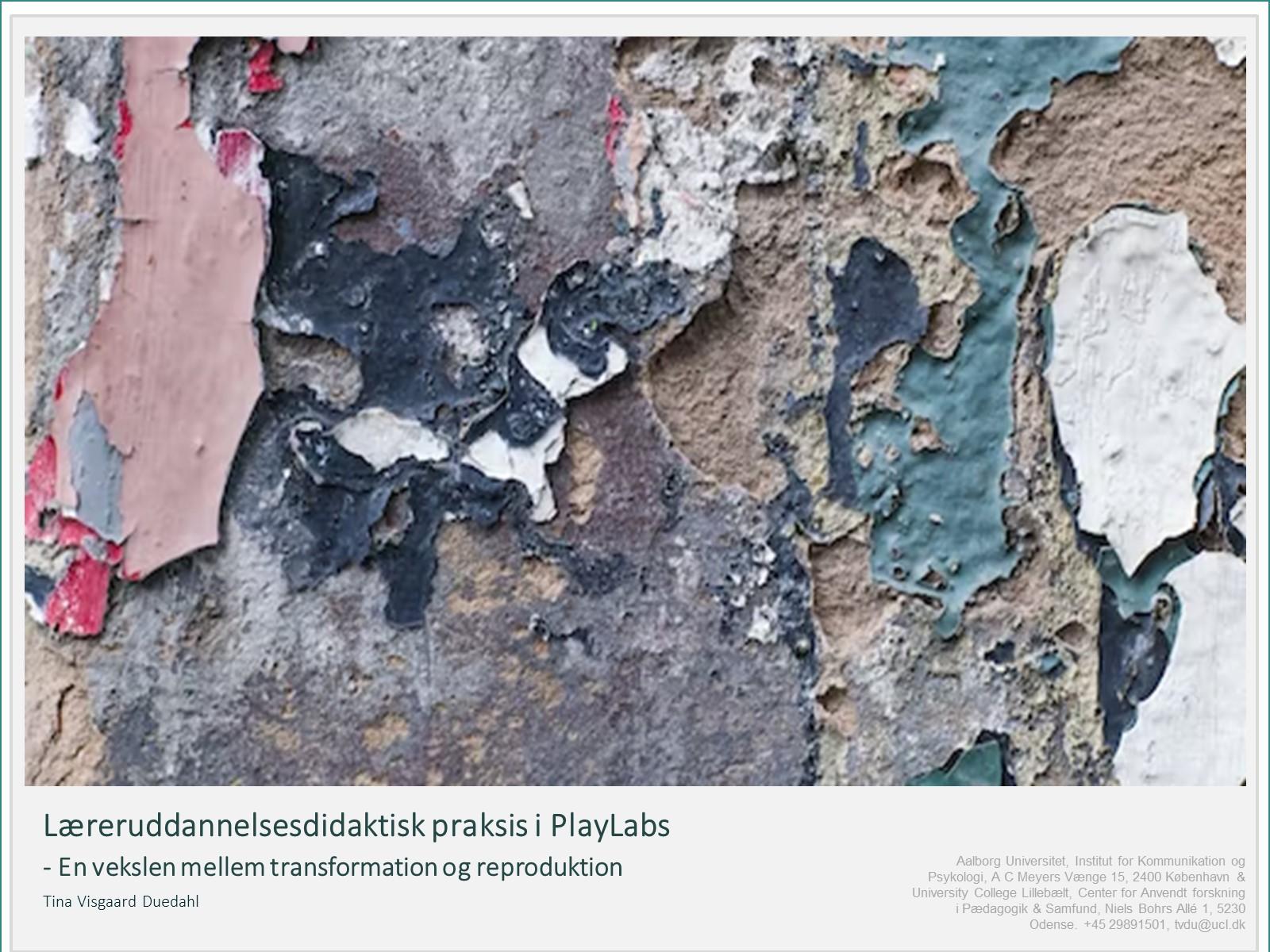PLAY/MAKERSPACES PÅ LÆRERUDDANNELSEN: Tina Visgaard Duedahl, UCL/Aalborg Universitet, deler forskningsresultater fra sit Ph.D. projekt, hvor hun sammen med læreruddannere udvikler didaktiske designs til undervisning i og med PlayLabs.
